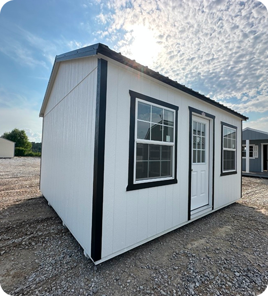 Walkthroughs of our portable buildings, carports, and outdoor structures so you can see exactly what’s available on the lot.